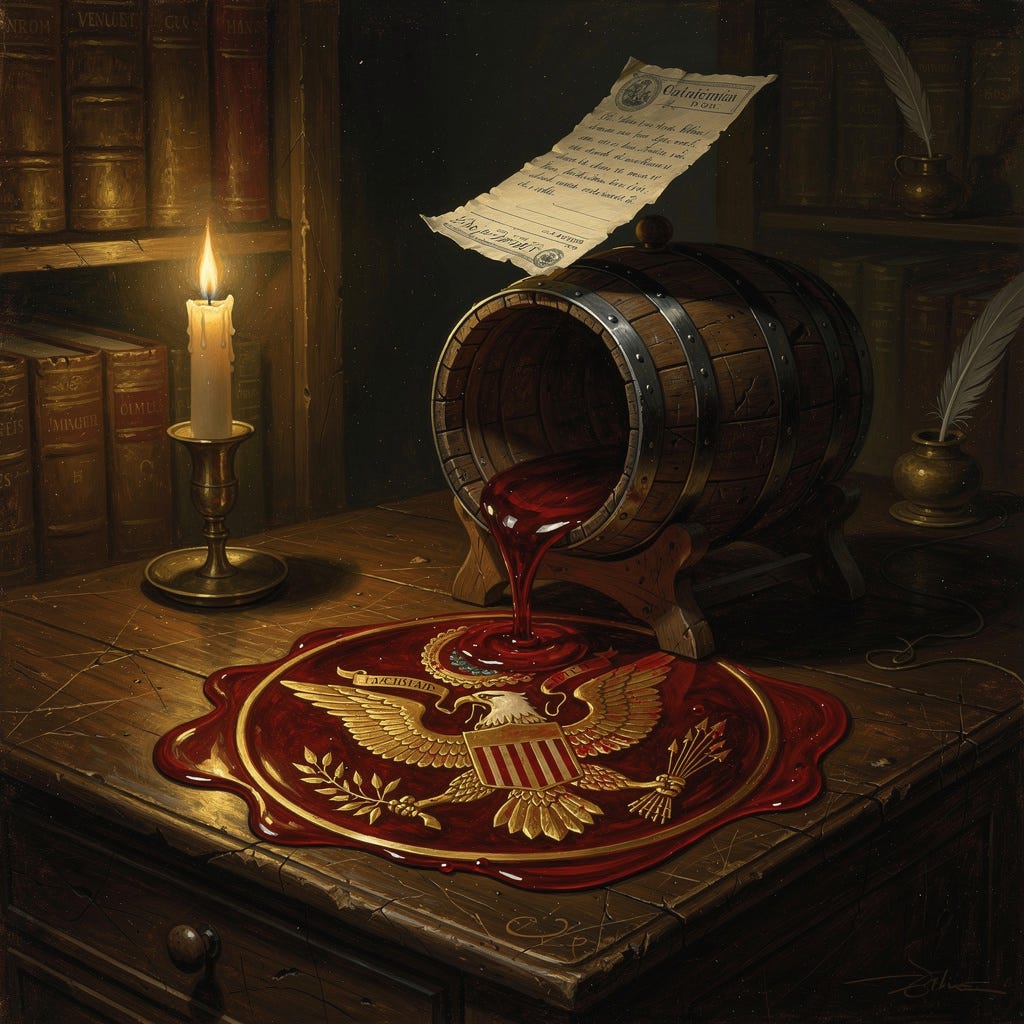Then he asked for credit. A quarter cask of wine. Congress said no.